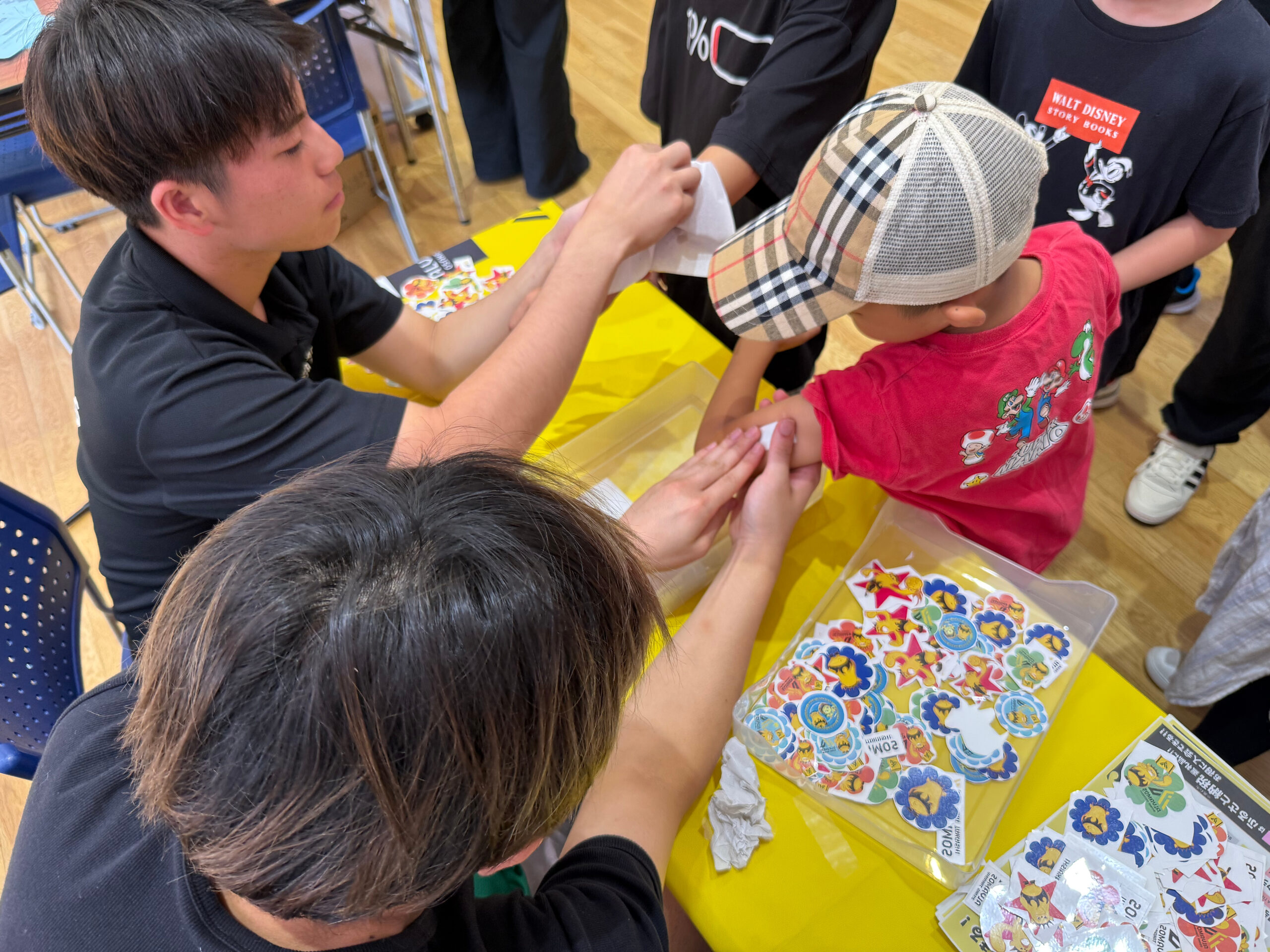 ペイントシールは選手自身が子どもたちに貼り付けを行いました。