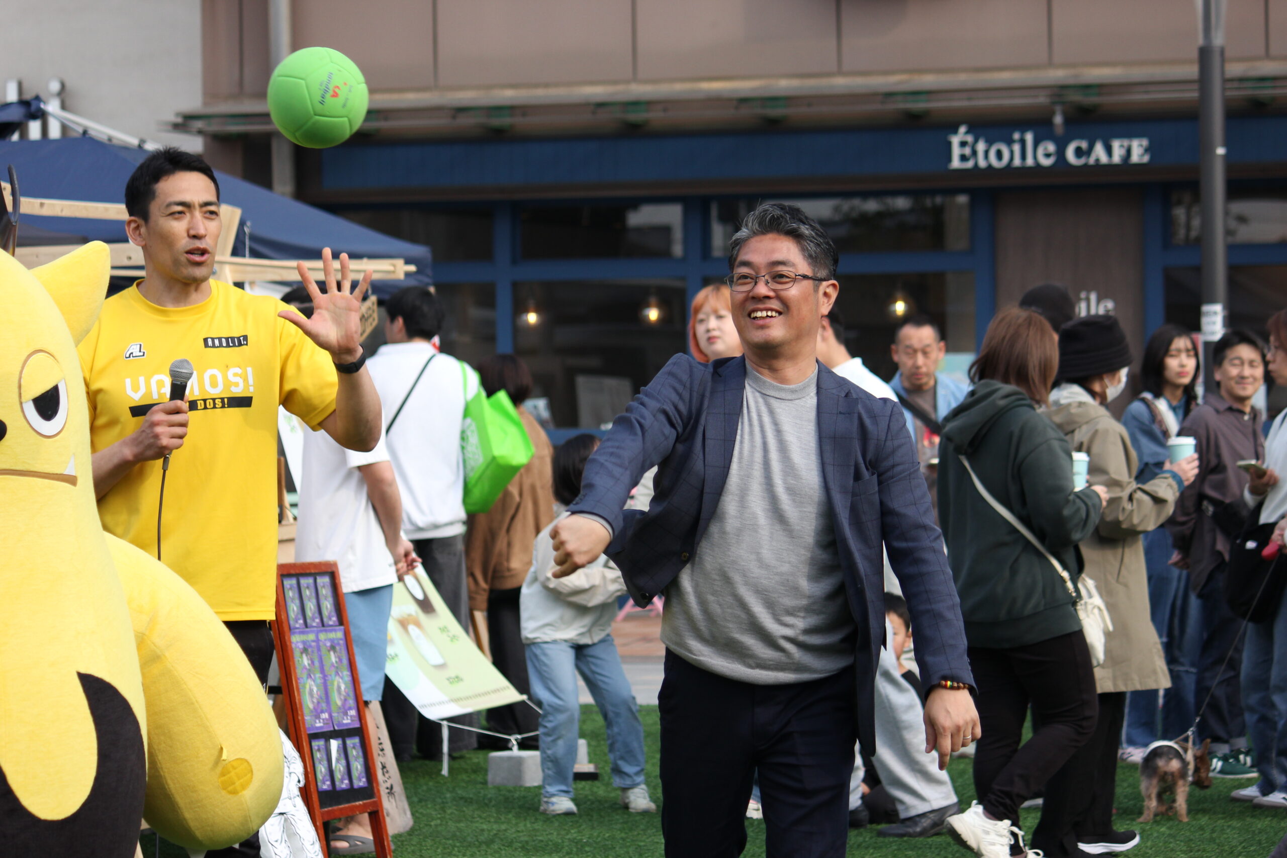 ステージでは、高石市・畑中市長がパスキャッチ体験に飛び入り参加いただきました。