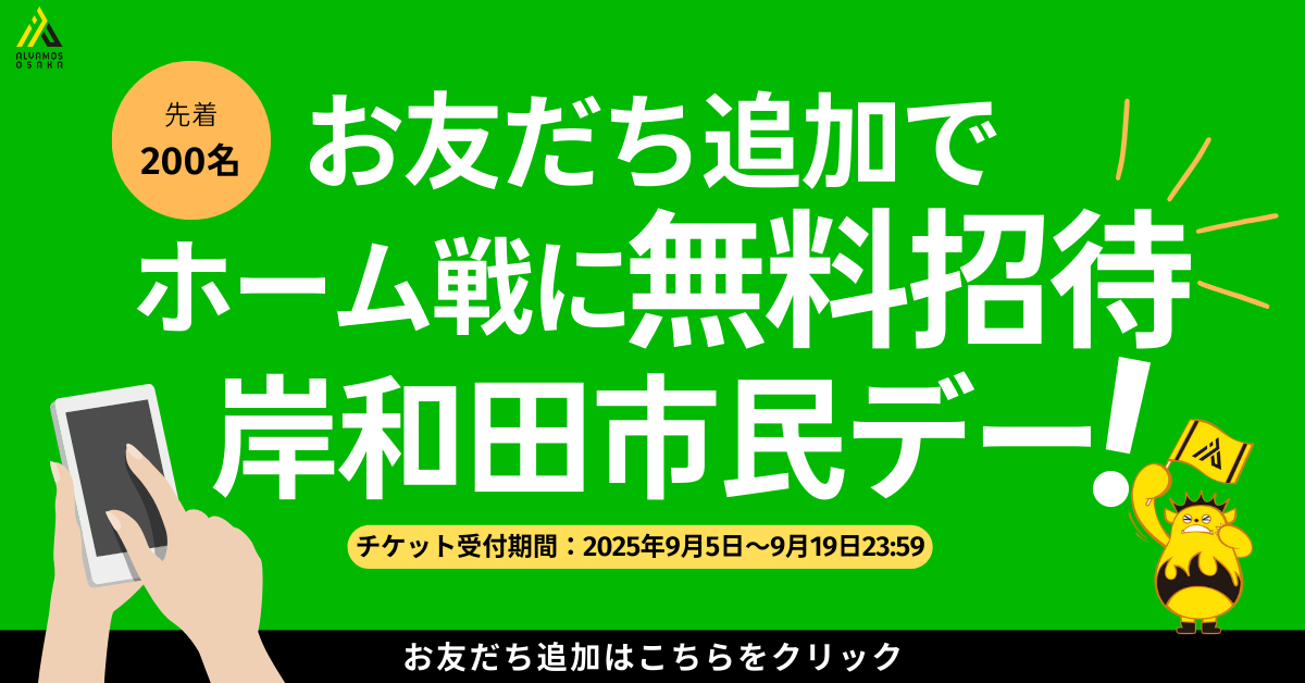 本イベントでは、岸和田市に在住・在学・在勤の方を対象に、対象試合のスタンド席(自由席)へ先着200名様を無料ご招待。